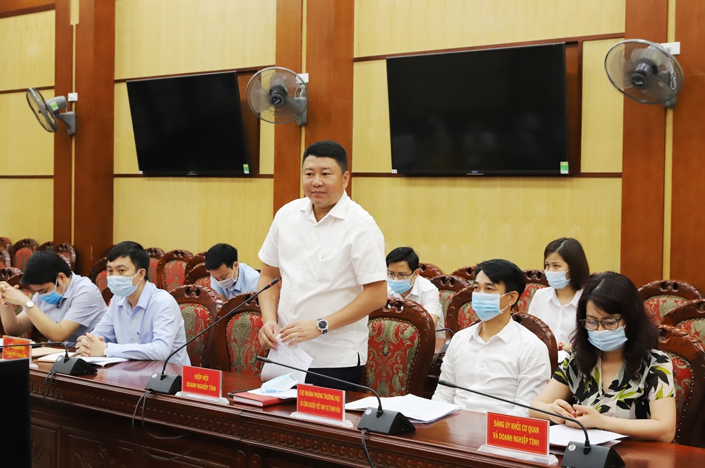 | Đại diện Hiệp hội Doanh nghiệp tỉnh phát biểu tại buổi làm việc. |