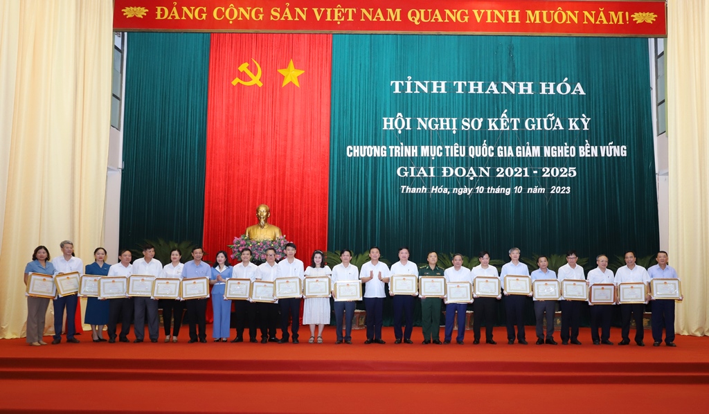 Tại hội nghị, đồng chí Đỗ Trọng Hưng - Ủy viên Trung ương Đảng, Bí thư Tỉnh ủy, Chủ tịch HĐND tỉnh, Trưởng Ban Chỉ đạo thực hiện các CTMTQG tỉnh giai đoạn 2021-2025; các đồng chí lãnh đạo tỉnh đã trao Bằng khen của Chủ tịch UBND tỉnh cho 44 tập thể, 26 cá nhân, 17 hộ gia đình đã có nhiều thành tích trong thực hiện phong trào thi đua “Vì người nghèo - Không để ai bị bỏ lại phía sau” giai đoạn 2021- 2023.