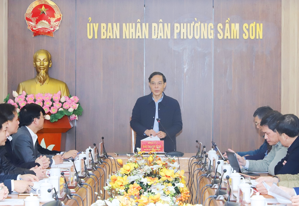Thay mặt Ban Chỉ đạo Phát triển du lịch tỉnh, đồng chí Trưởng ban, Phó Chủ tịch UBND tỉnh Đầu Thanh Tùng đánh giá cao những kết quả đạt được trong công tác phát triển du lịch của 2 phường Sầm Sơn và Nam Sầm Sơn. Đồng chí khẳng định, Sầm Sơn và Nam Sầm Sơn có tài nguyên du lịch phong phú, vị trí thuận lợi, hạ tầng tương đối đồng bộ, giữ vai trò đặc biệt quan trọng trong chiến lược phát triển du lịch của tỉnh.