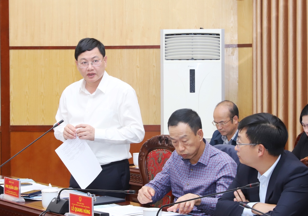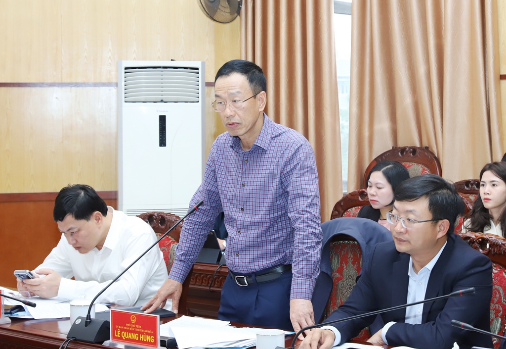 | Phó Chủ tịch UBND tỉnh Lê Quang Hùng, Phó Trưởng Ban tổ chức hội nghị phát biểu ý kiến tại hội nghị. |