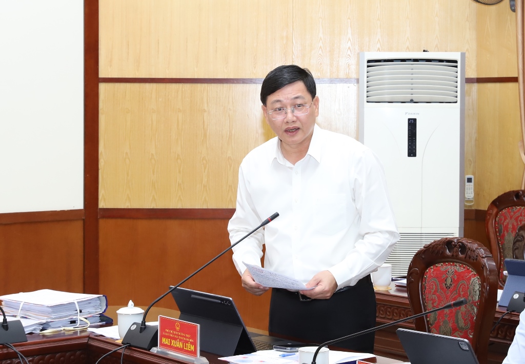 Phó Chủ tịch Thường trực UBND tỉnh Mai Xuân Liêm phát biểu tại phiên họp.