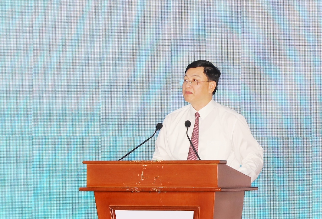 Phó Chủ tịch Thường trực UBND tỉnh Mai Xuân Liêm phát biểu tại buổi lễ.