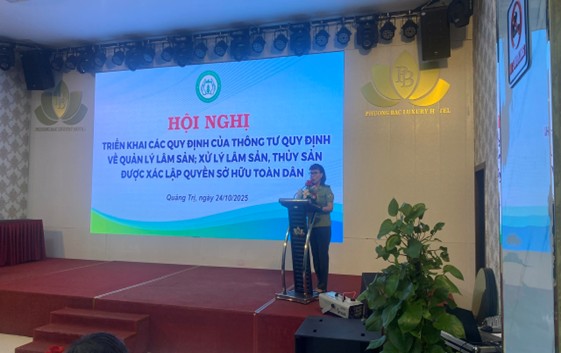 Ngày 24/10/2025 tại phường Đồng Hới, tỉnh Quảng Trị diễn ra Hội nghị triển khai các quy định của Thông tư quy định về quản lý lâm sản; xử lý lâm sản, thuỷ sản được xác lập quyền sở hữu toàn dân.