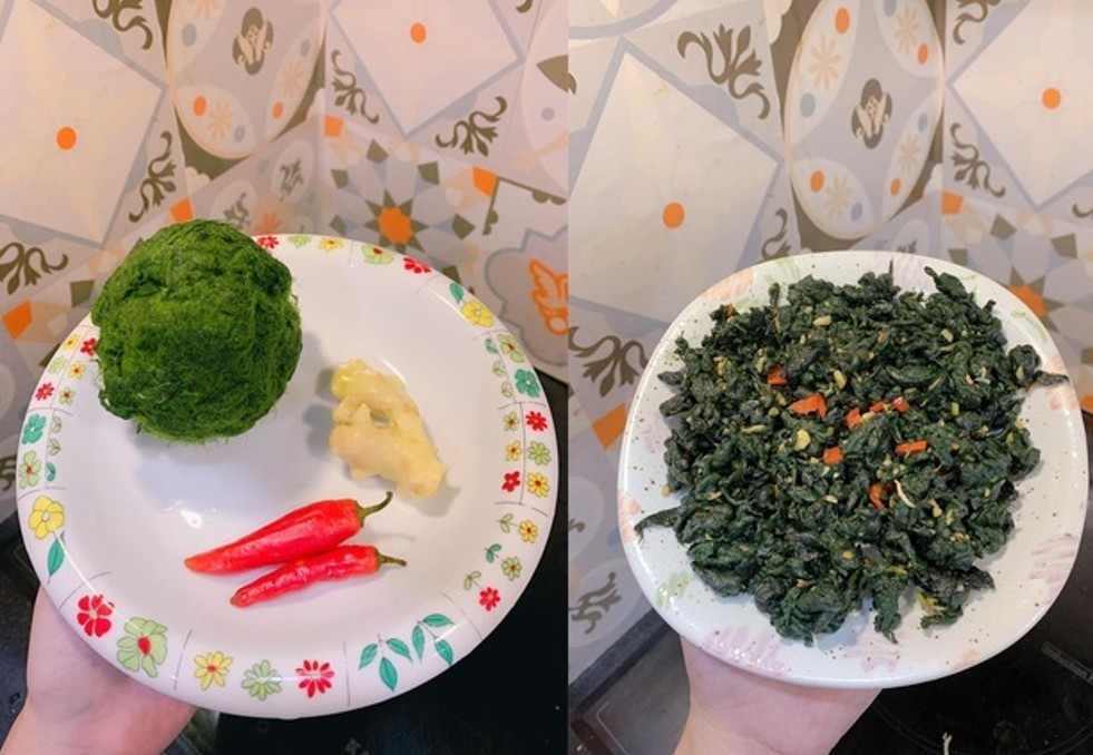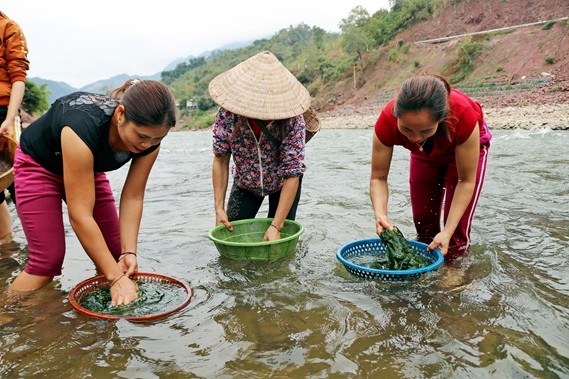 Hình ảnh bà con lấy rêu từ suối về chế biến món ăn