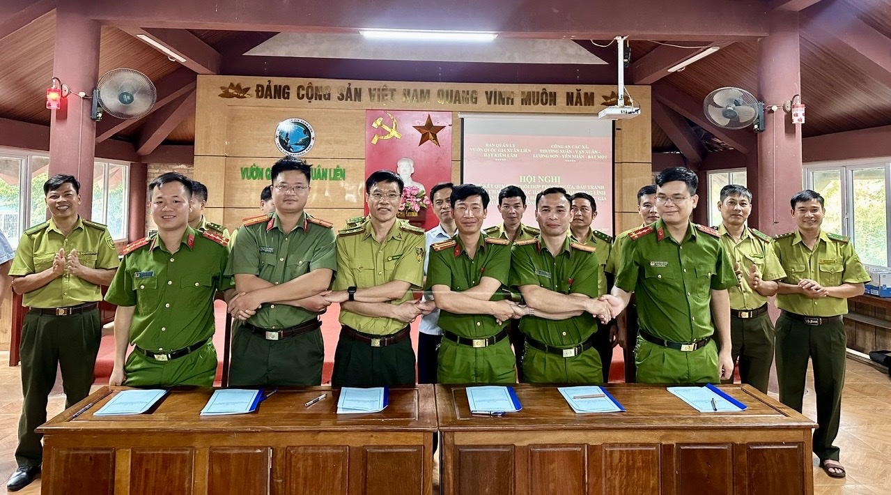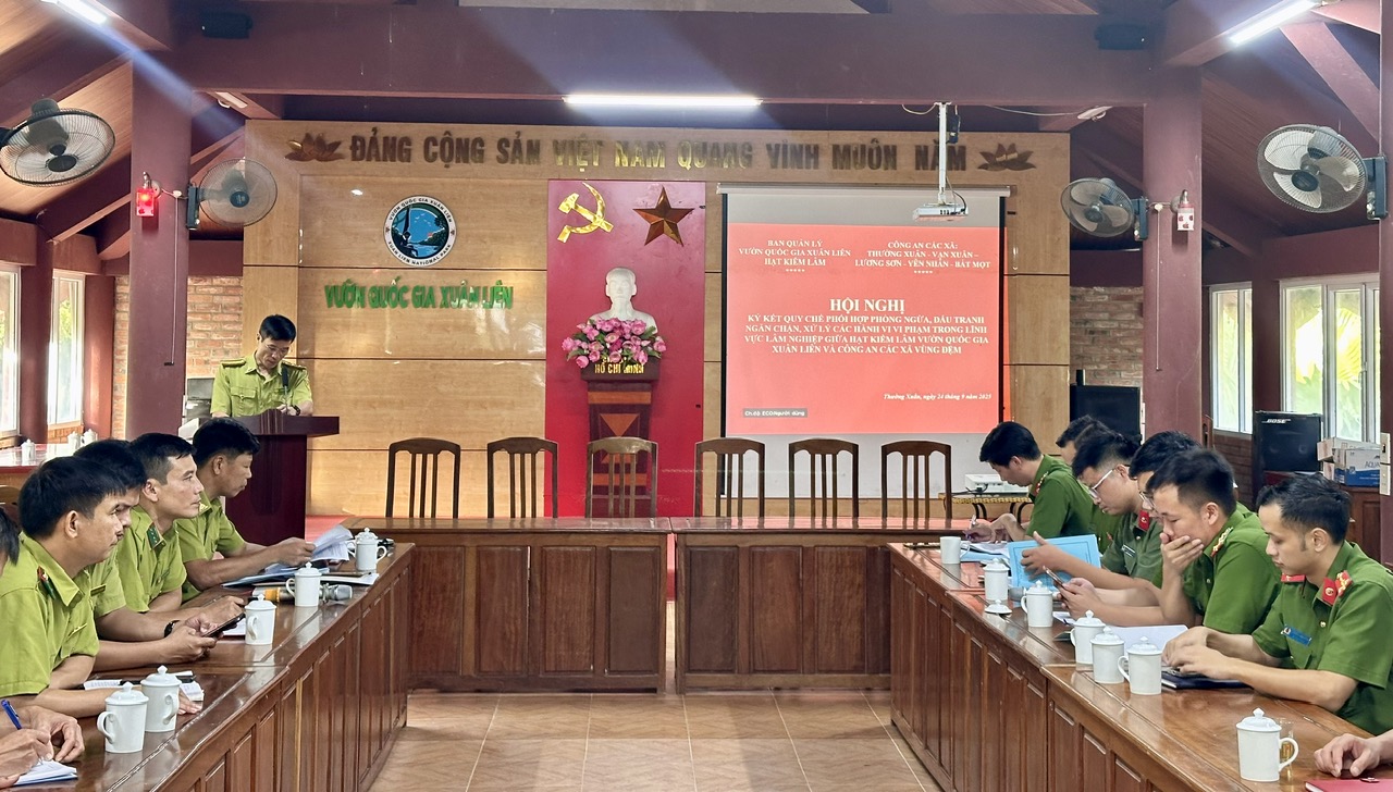 Để đảm bảo diện tích rừng được giao quản lý ổn định, các hành vi vi phạm an ninh rừng sớm được phát hiện, xử lý nghiêm, kịp thời, đúng quy định của pháp luật. Ngày 24/9/2025, Hạt Kiểm lâm Vườn quốc gia Xuân Liên - Ban quản lý Vườn quốc gia Xuân Liên phối hợp với lực lượng công an các xã: Bát Mọt, Yên Nhân, Lương Sơn, Thường Xuân và Vạn Xuân tổ chức Hội nghị thảo luận, thống nhất, ký Quy chế phối hợp trong phòng ngừa, đấu tranh ngăn chặn, xử lý các hành vi vi phạm pháp luật trong lĩnh vực lâm nghiệp giai đoạn 2025-2030.