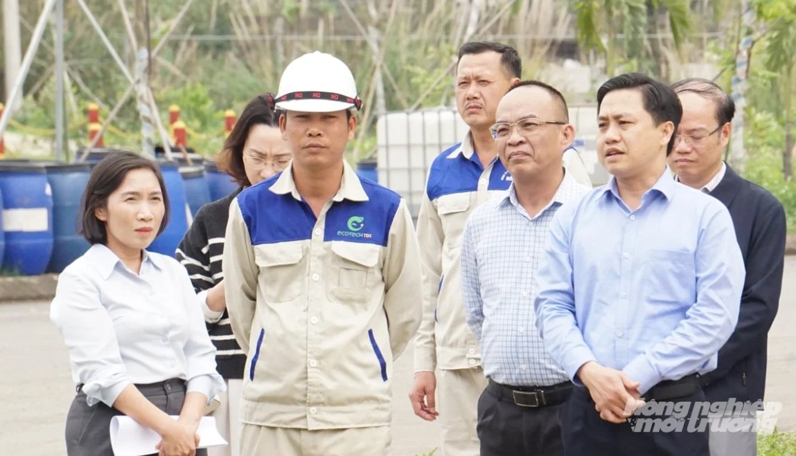 Đại diện Công ty CP Đầu tư và Phát triển Công nghệ môi trường Ecotec báo cáo tình hình xử lý rác thải tại nhà máy. Ảnh: Quốc Toản.