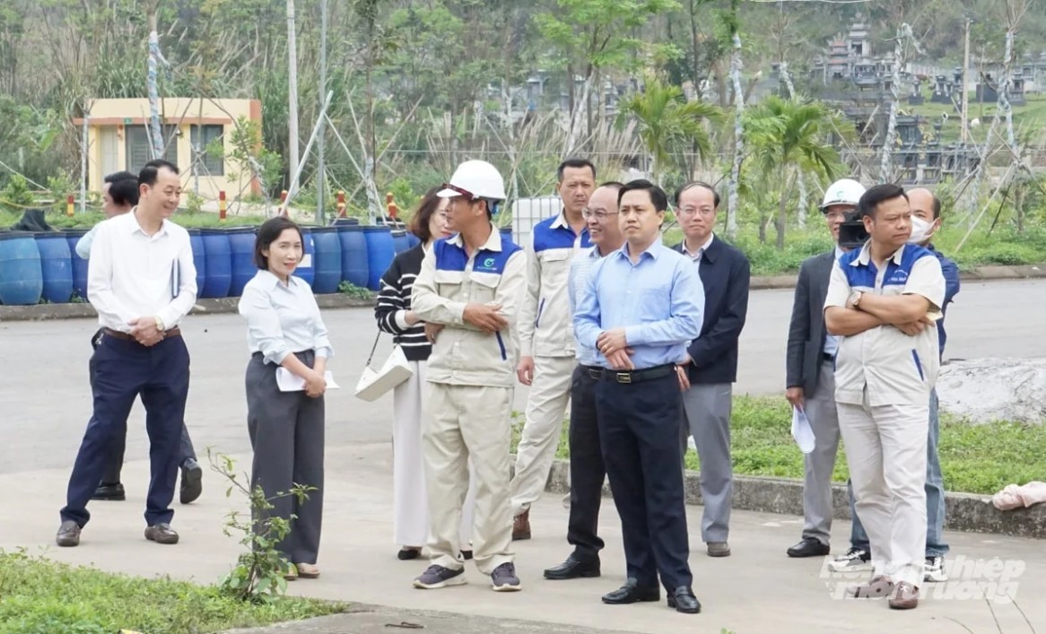 Giám đốc Sở Nông nghiệp và Môi trường Thanh Hóa (áo xanh) kiểm tra hoạt động xử lý rác thải tại Nhà máy xử lý rác thải Đông Nam.