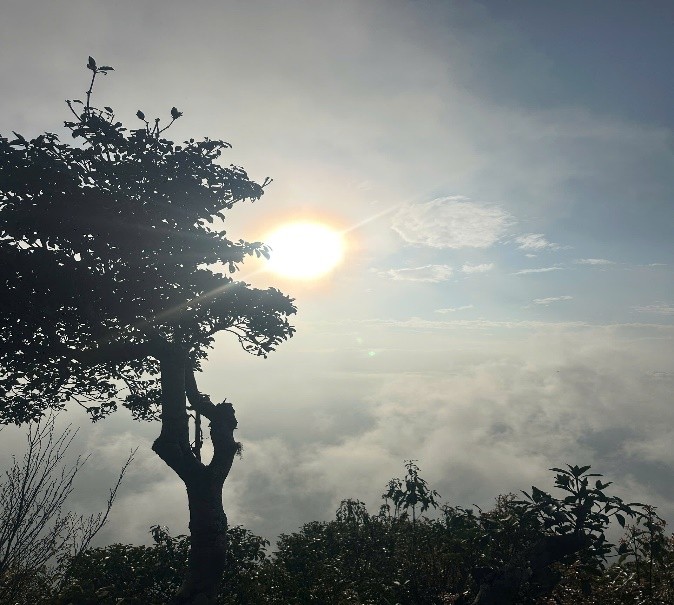 Nhưng nỗ lực nào cũng được đền đáp xứng đáng. Khi đặt chân lên đến khu vực đỉnh Pù Luông, một không gian bao la, hùng vĩ mở ra trước mắt. Ở đó, giữa ngàn mây bồng bềnh và núi non trùng điệp, sắc hoa đỗ quyên bỗng hiện lên, như một nét chấm phá đầy mê hoặc, chúng mọc thành từng chùm, cánh hoa mỏng manh, trắng muốt, đôi khi pha chút hồng nhạt hoặc tím nhẹ, nổi bật trên nền lá xanh đậm của núi rừng. Vẻ đẹp ấy thanh cao, tinh khiết, mang lại cảm giác bình yên và thư thái lạ thường.